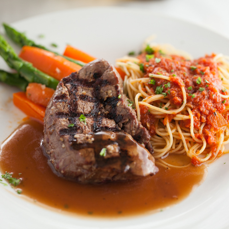 The following entrees are served with seasonal vegetables and pasta or mashed potatoes (upon request).